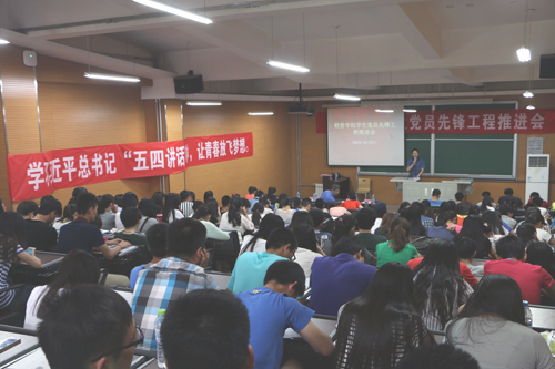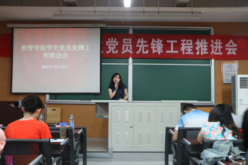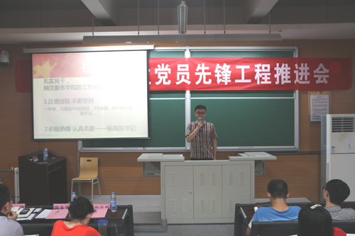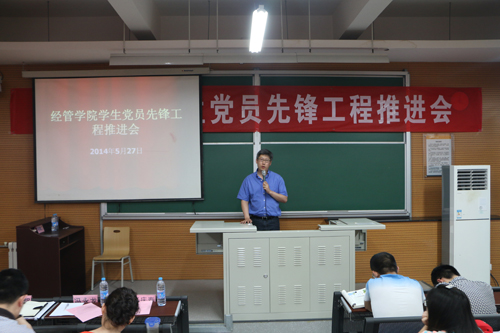 最后,学院党总支副书记魏强老师从学院党总支对学生党员的要求和目标谈了对学生党员和广大积极分子的期望,希望学生党员们从小事做起,共同努力,提高学校的综合实力和整体风貌,争取在更高的平台上发展。同时他围绕学院学生党员先锋工程的具体方案,要求学院全体党员要认真学习,认真承诺,认真实践,努力在学习实践中不断提高自己服务本领和综合素质,切实起到表率作用,在经管学院中掀起学习贯彻落实习总书记五四重要讲话精神高潮。